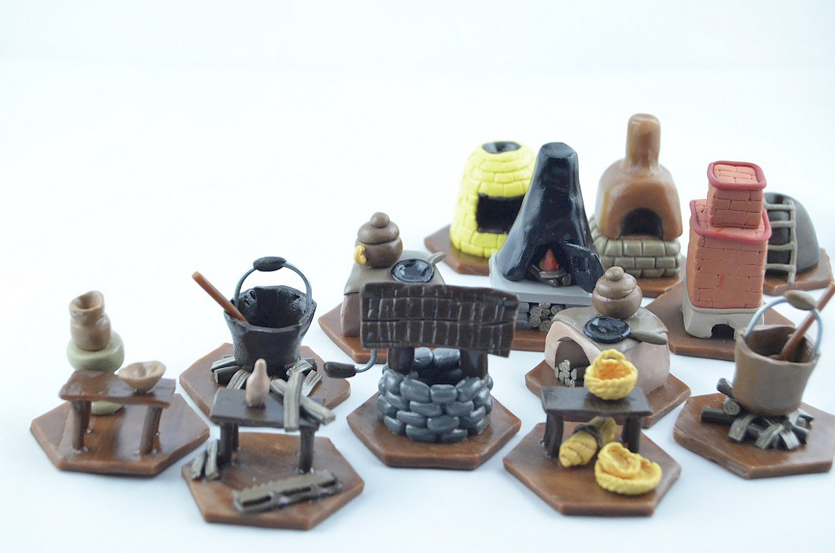 the major improvements for Agricola board game are handmade by me using polymer clay.