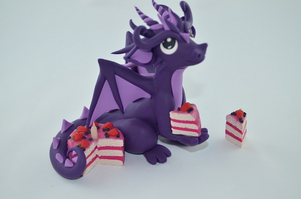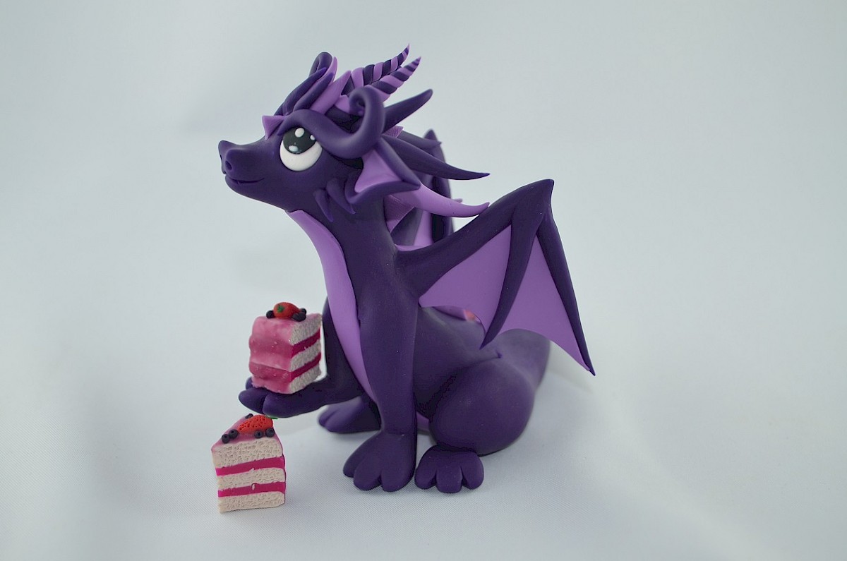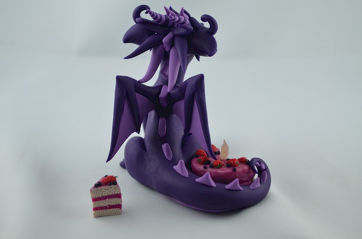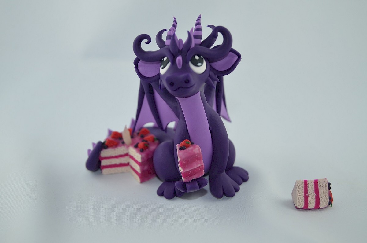 Dragon birthday parties are huge events full of balloons, sweets and presents. The violet dragon loves being invited on such parties, he always brings delicious cakes which he makes himself.