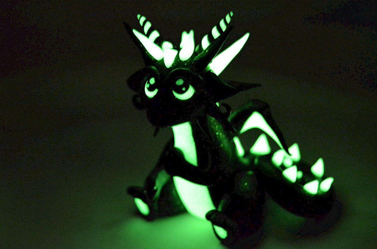black glitter glow in dark dragon