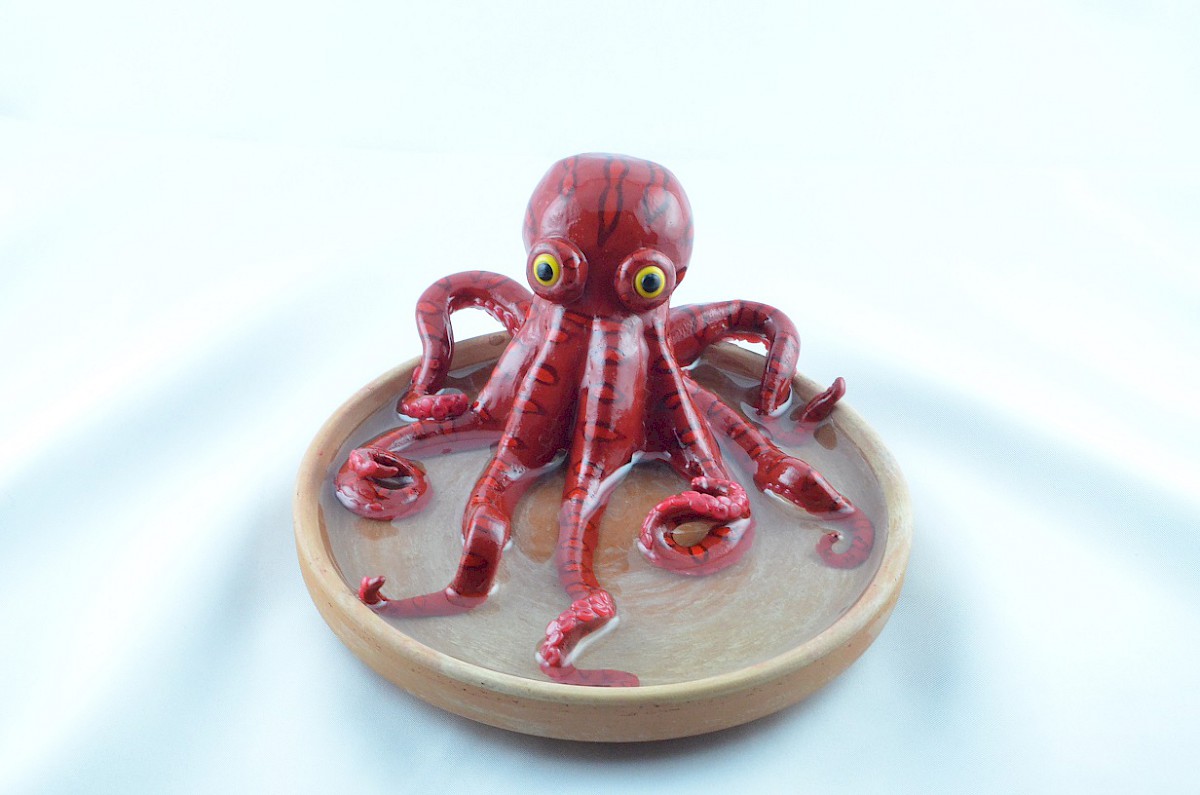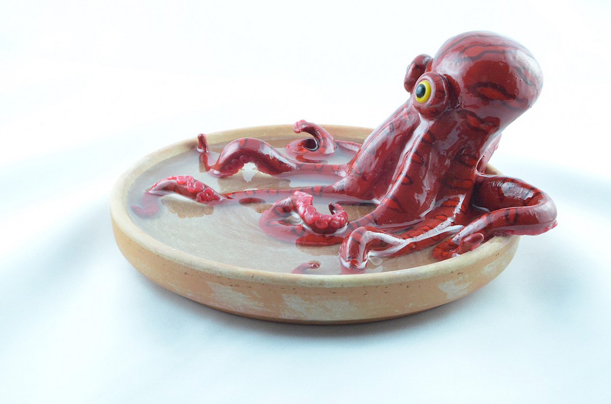 Octopus is handmade by me using polymer clay akryl paints, epoxy resin and a bowl from garden shop.