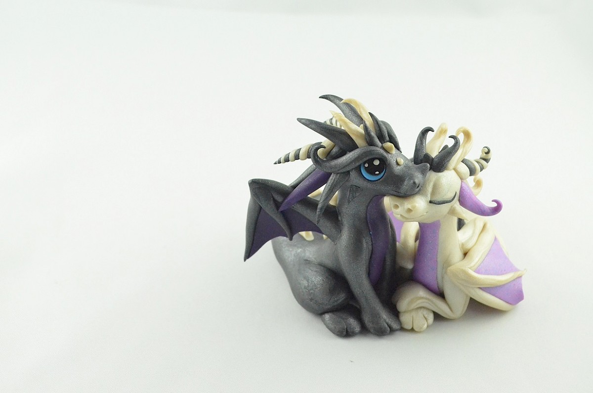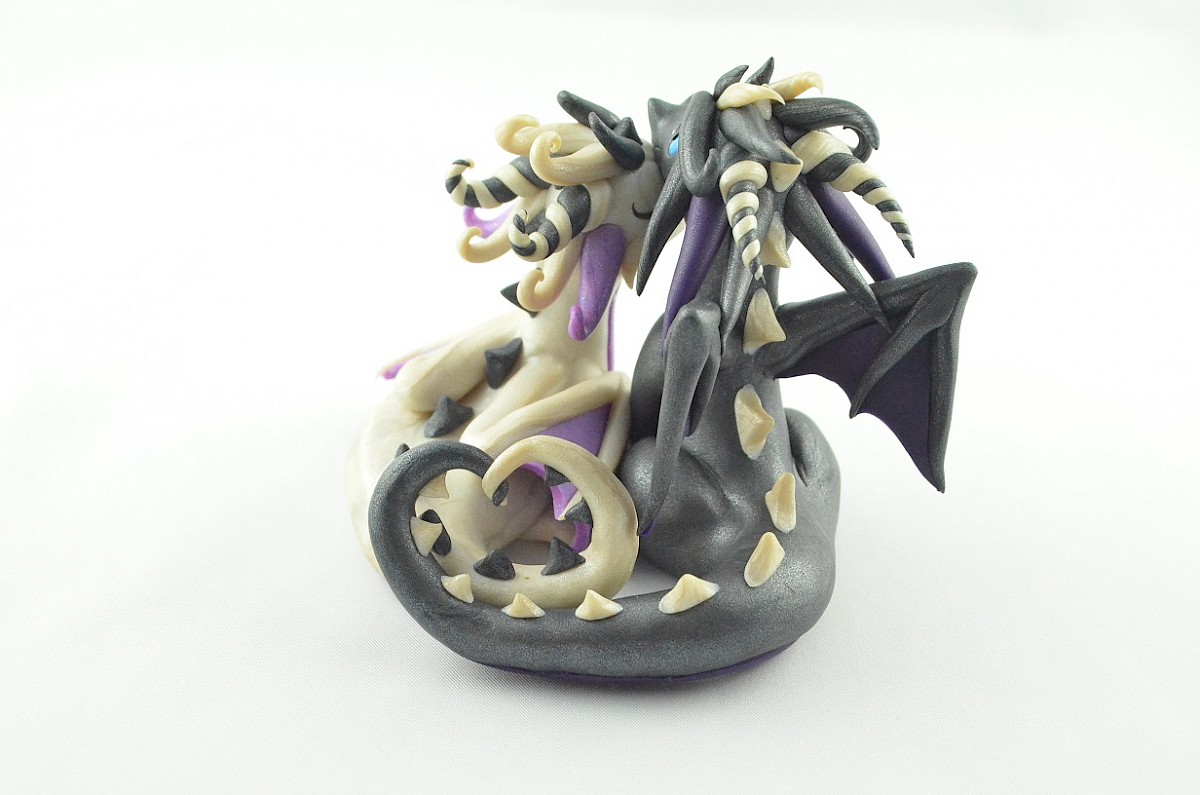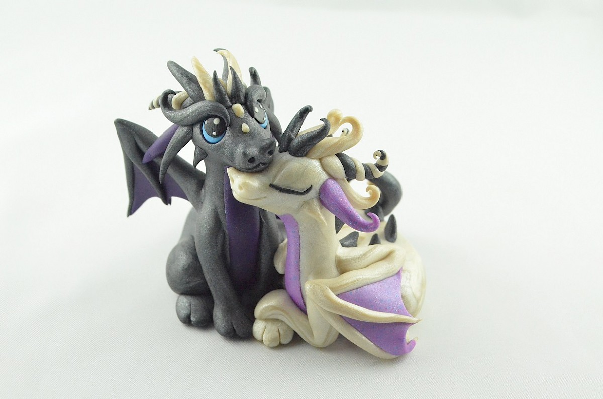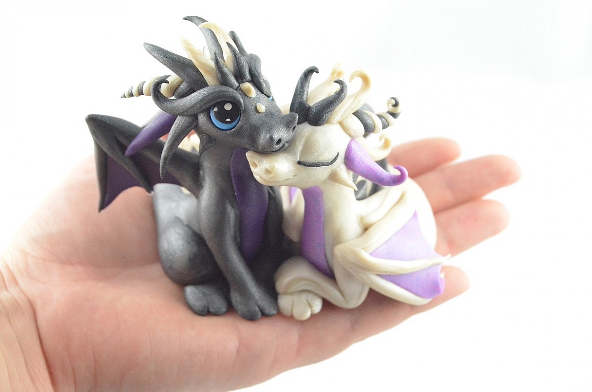Dragon's love is eternal; if it's real, it lasts forever. Dragons make couples for their whole life. This handmade pair of dragons is unseparated, even their tails are heart-shaped. The clay dragons spend every moment together, enjoying the life!