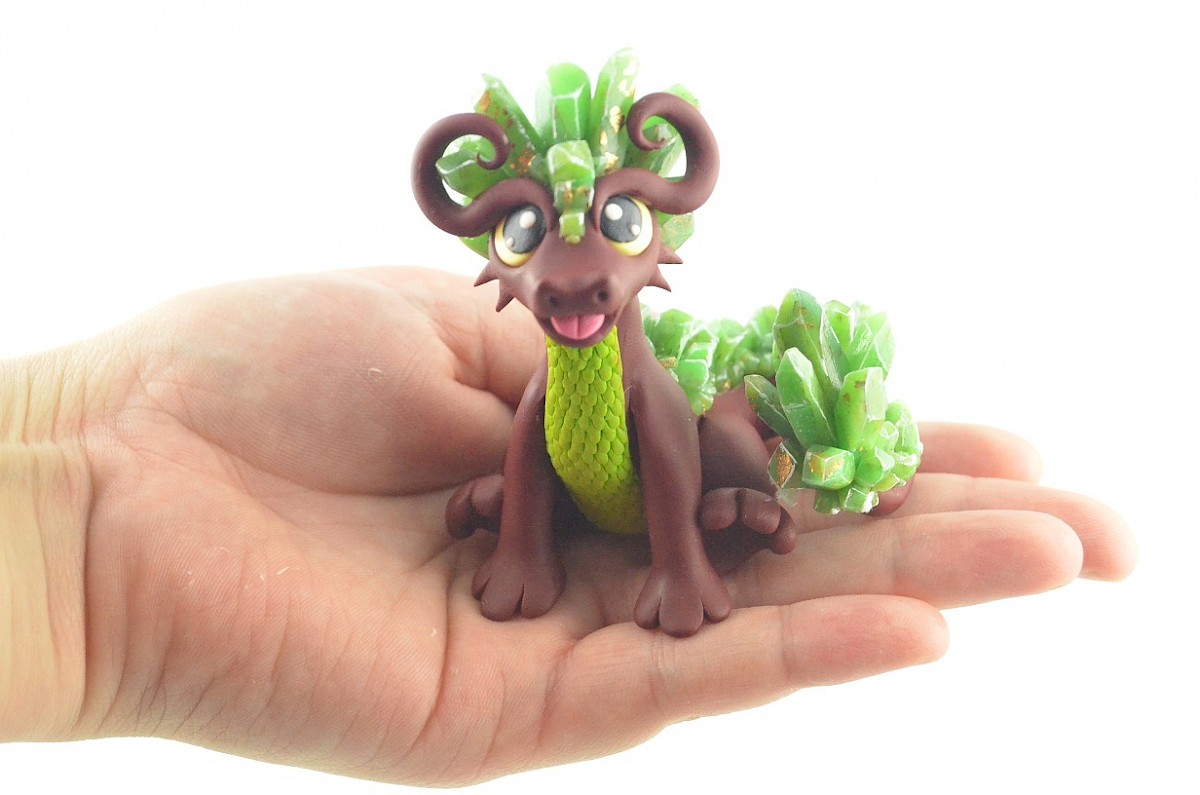 The crystal dragon draws the magic energy from the Earth and stores it in the shining crystals decorating his body. That way, the crystal dragon figurine is able to control the earthly element. The little dragon is a powerfull creature.