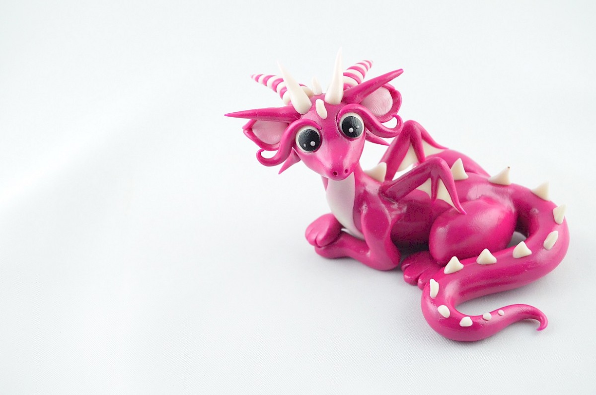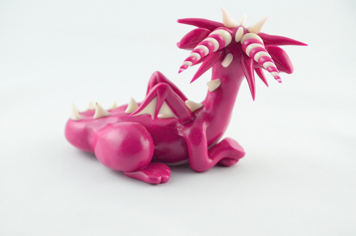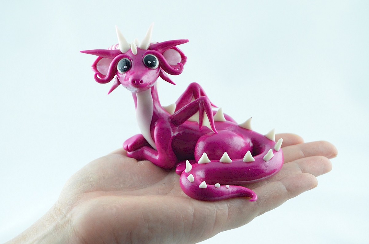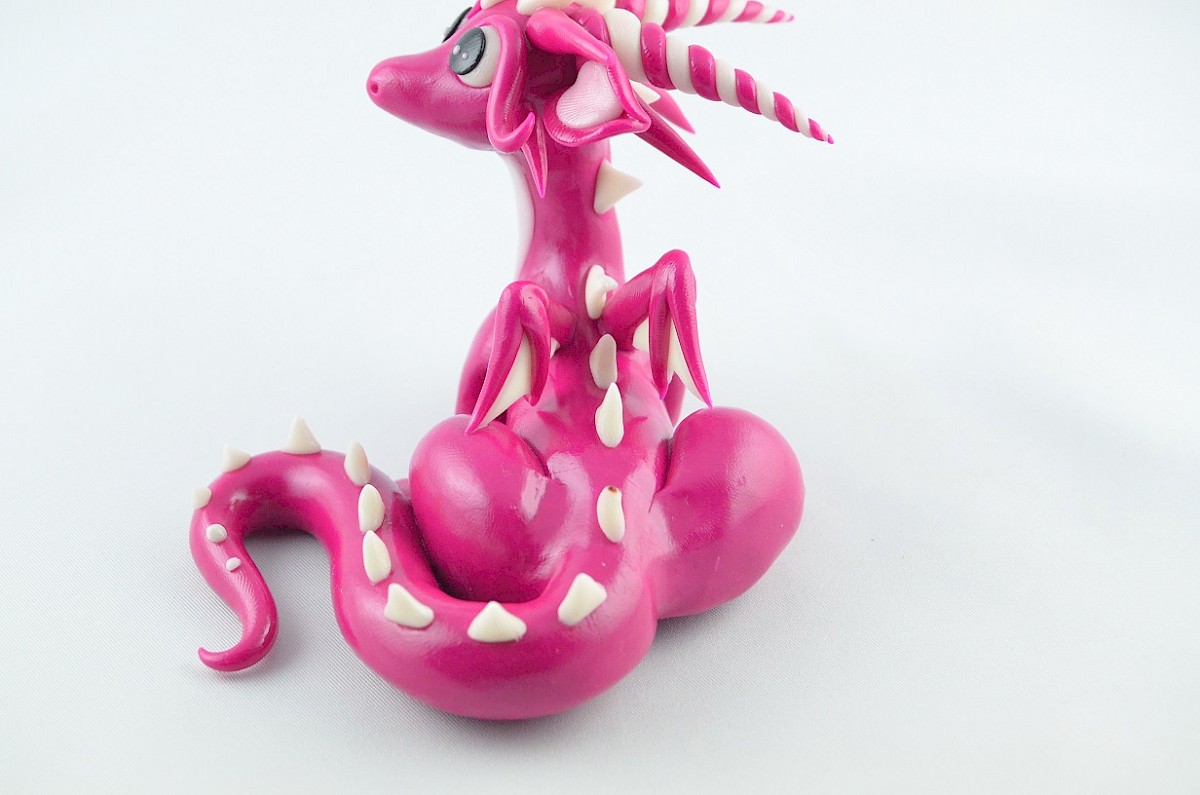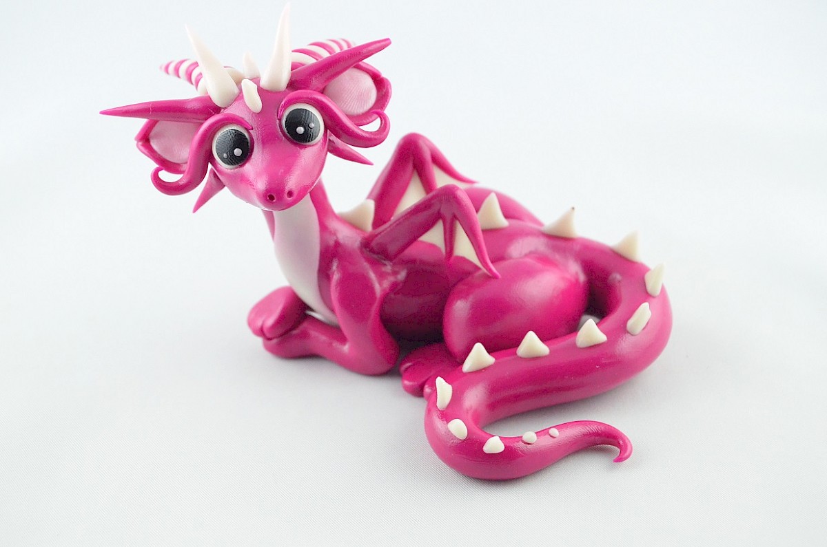 The clay dragon is fully handmade. Her big eyes are well visible on the pink body and attract attention. The dragon girl is a sensitive and romantic creature.