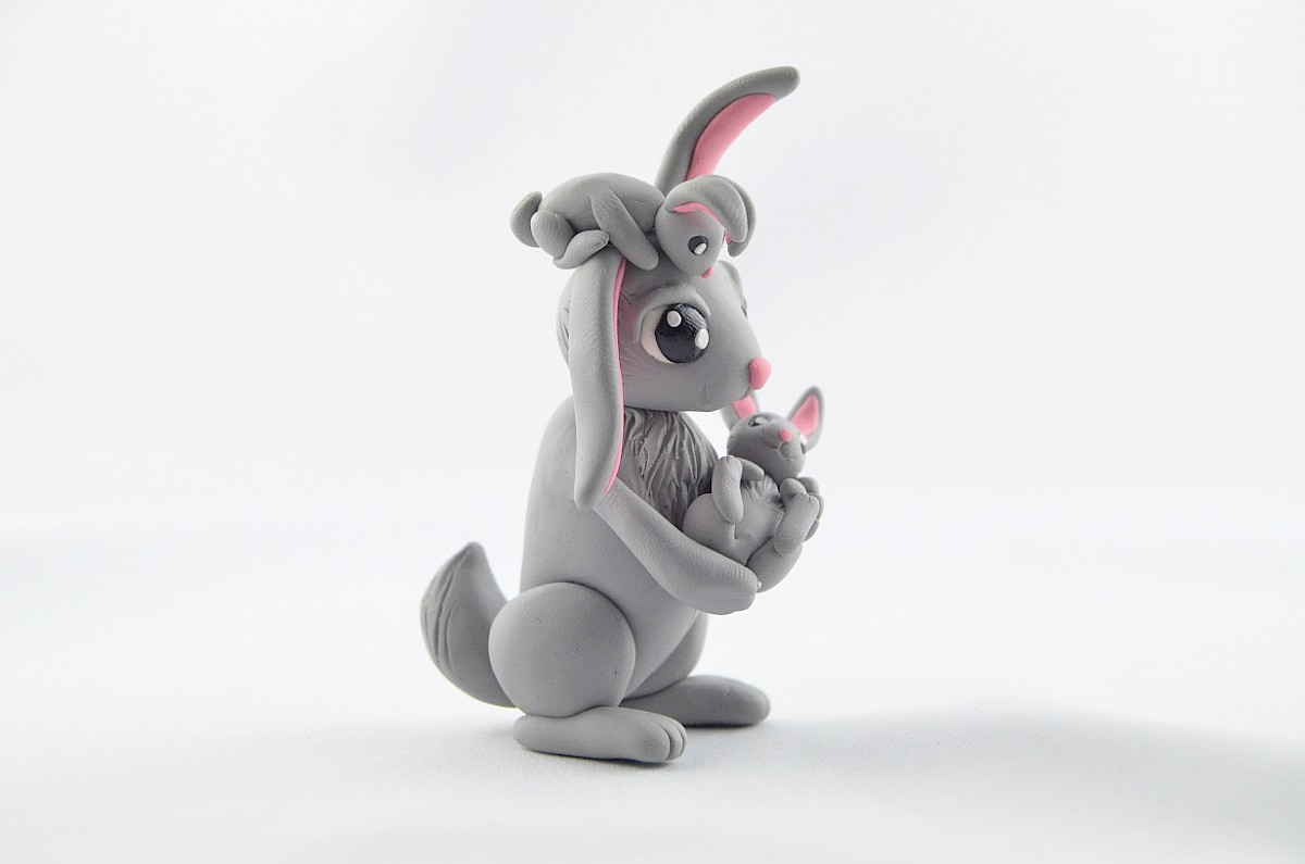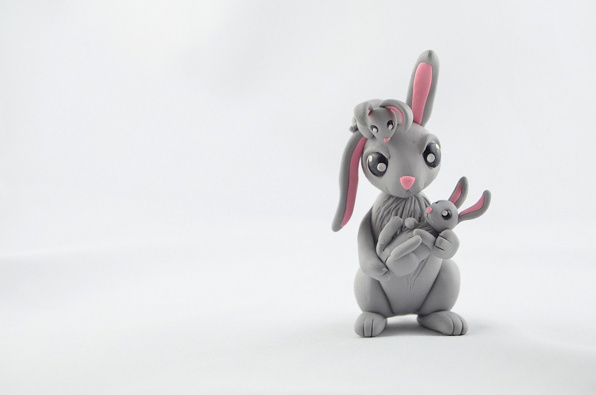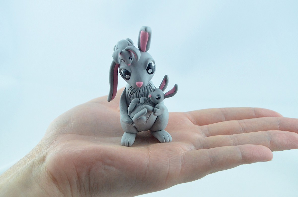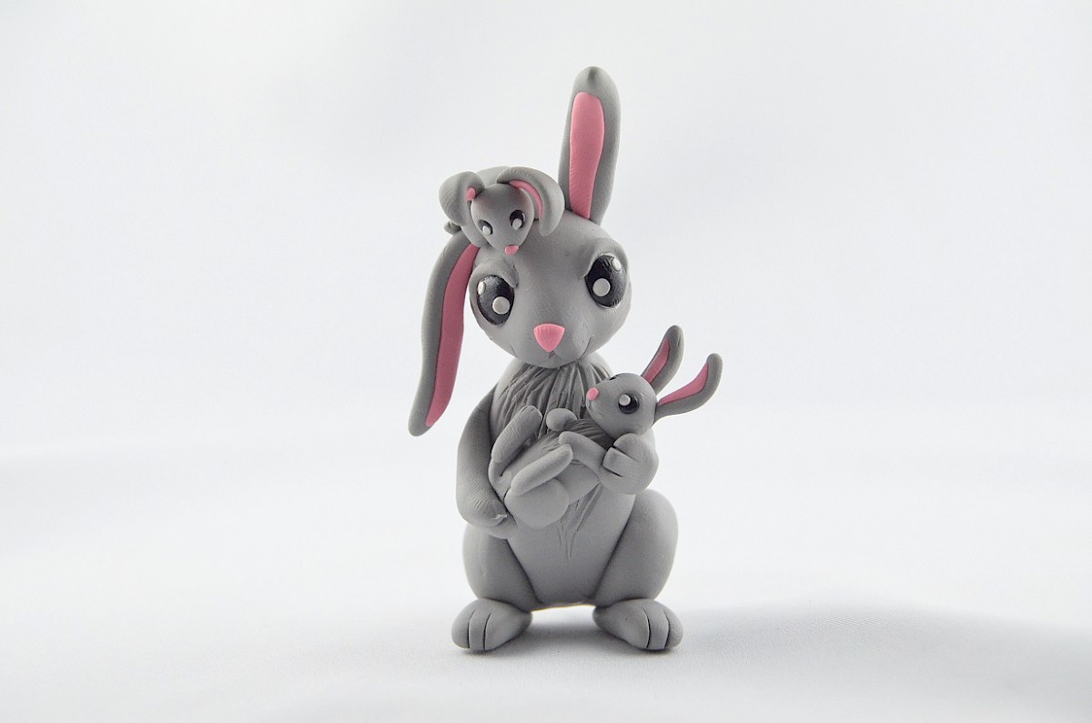 grey bunny with babies