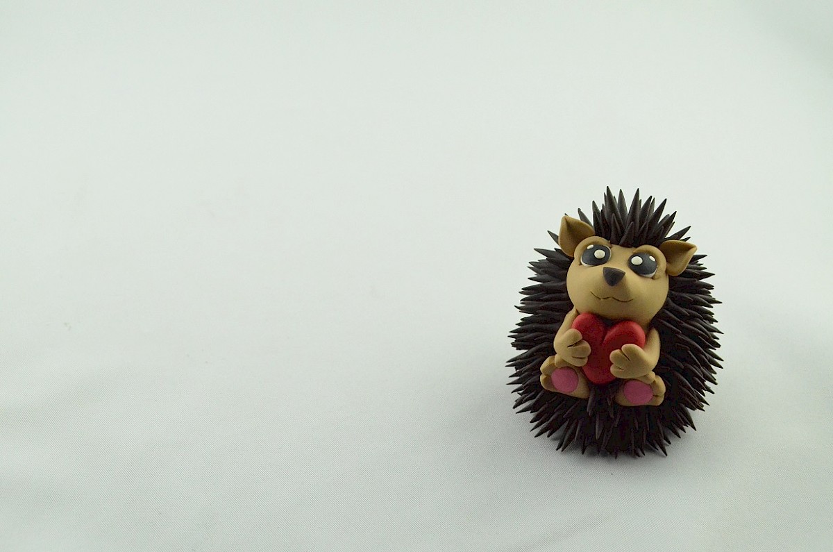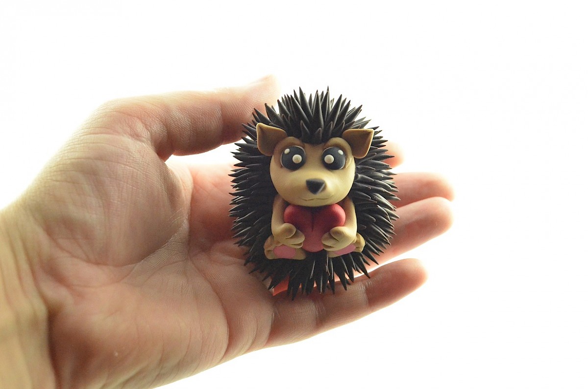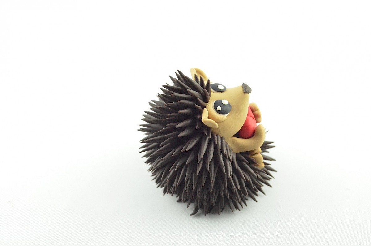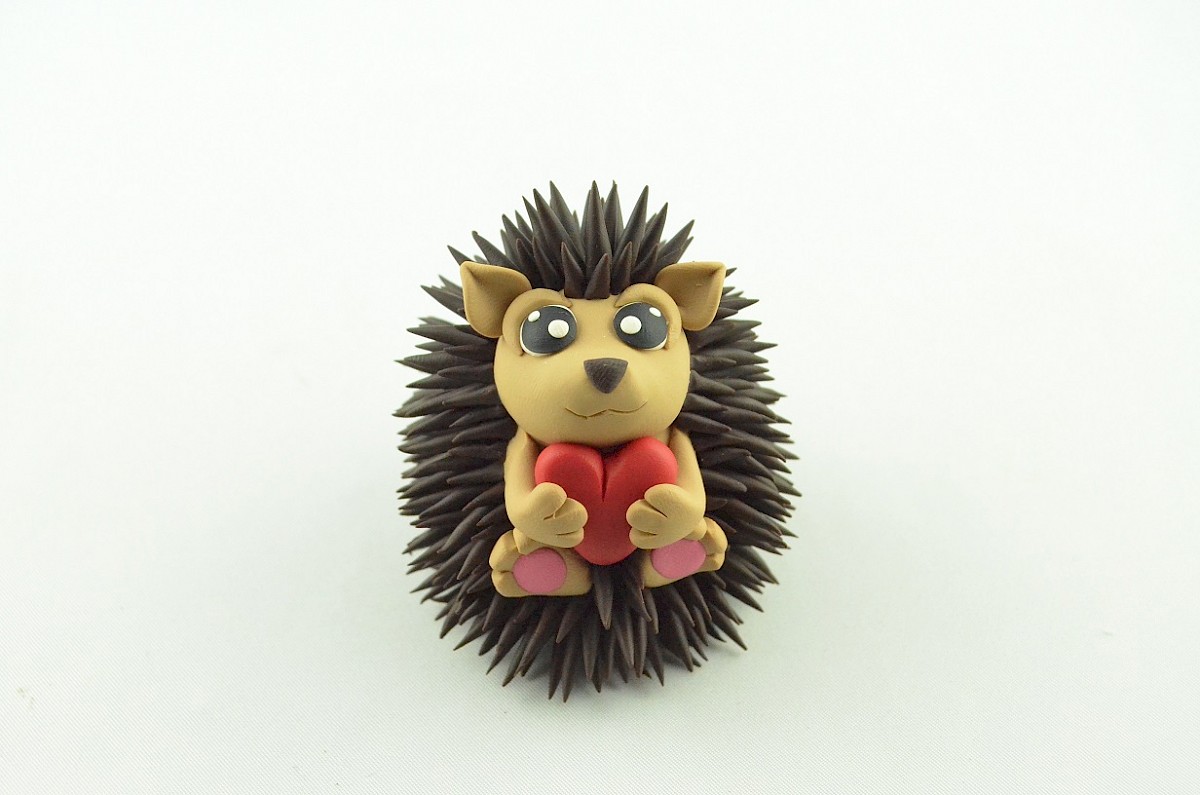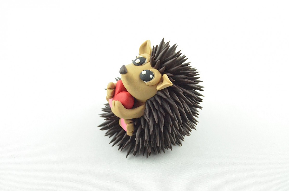 The little hedgehog figurine is holding a big red heart. The cute eyes will win everyone's heart. The sculpture is fully handcrafted, including each of the thin spikes. Use the handmade hedgehog as a decoration or a perfect gift for your loved one!