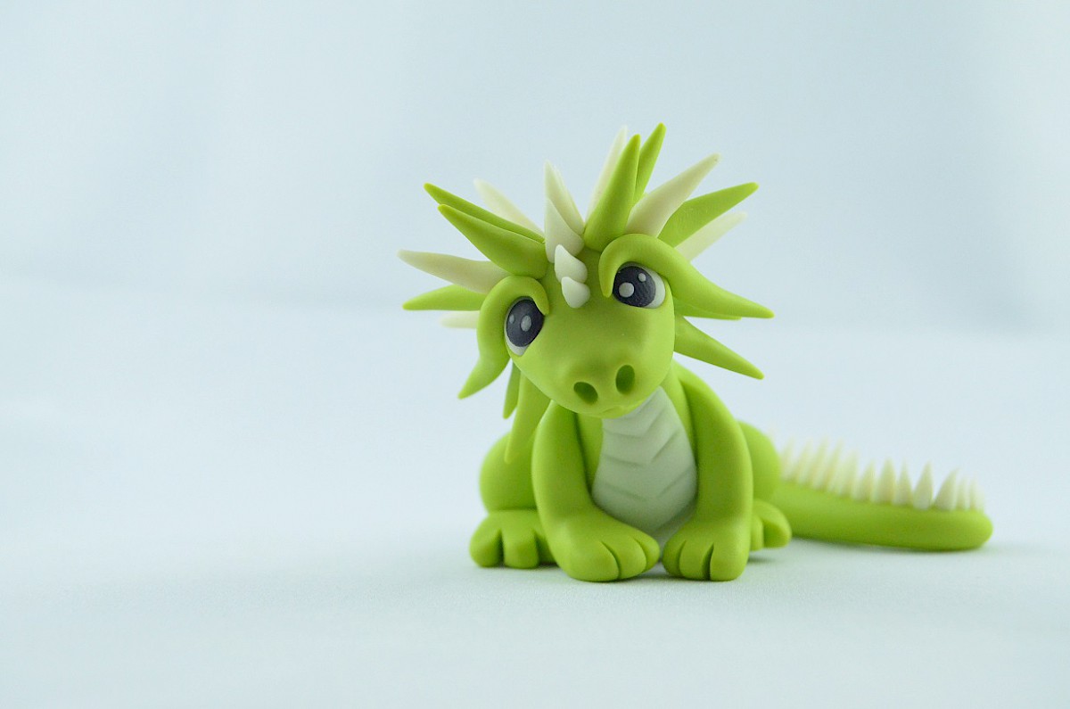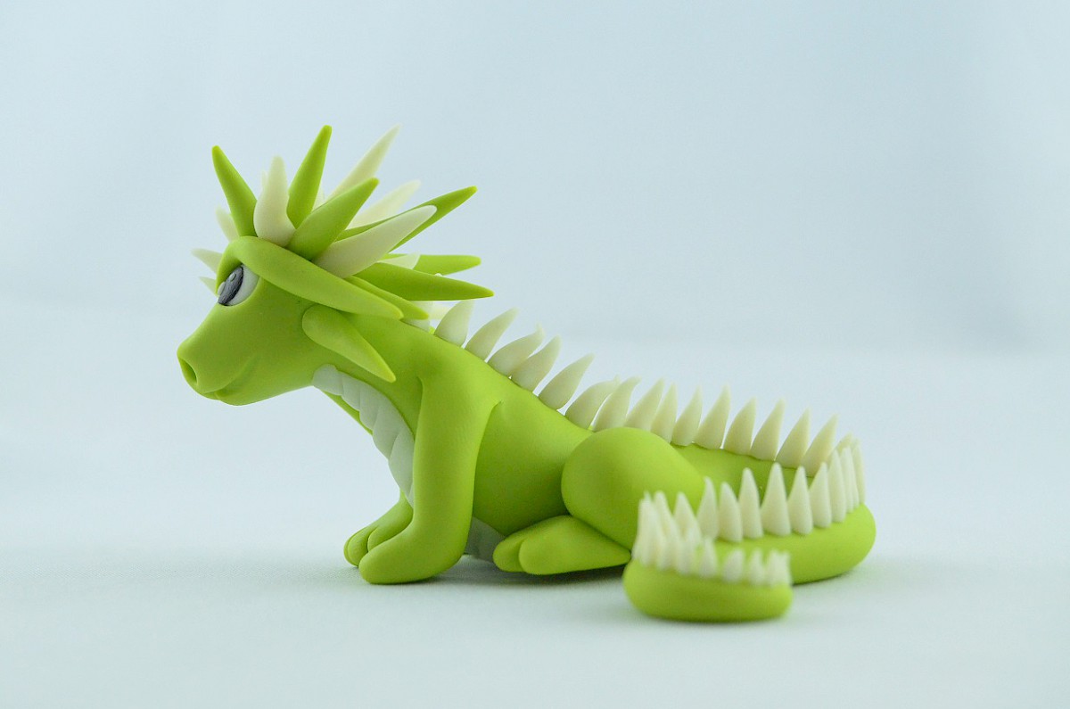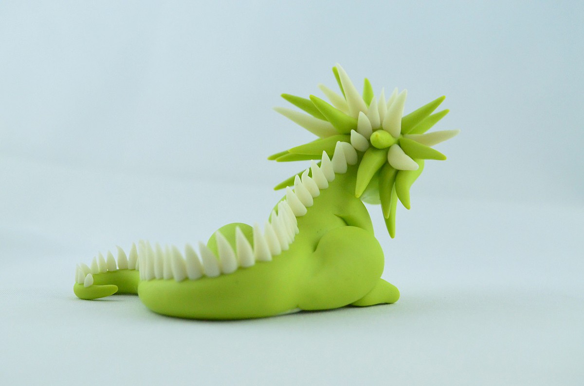 This light green handmade dragon sculpture just loves mountains. He climbs as high as possible and reaches new peak. Then, on the top, the clay dragon sits and admires the beauty of nature. Sometimes he hums melodies with flying nearby birds. Blowing wind carries the dragon’s song on the slopes!