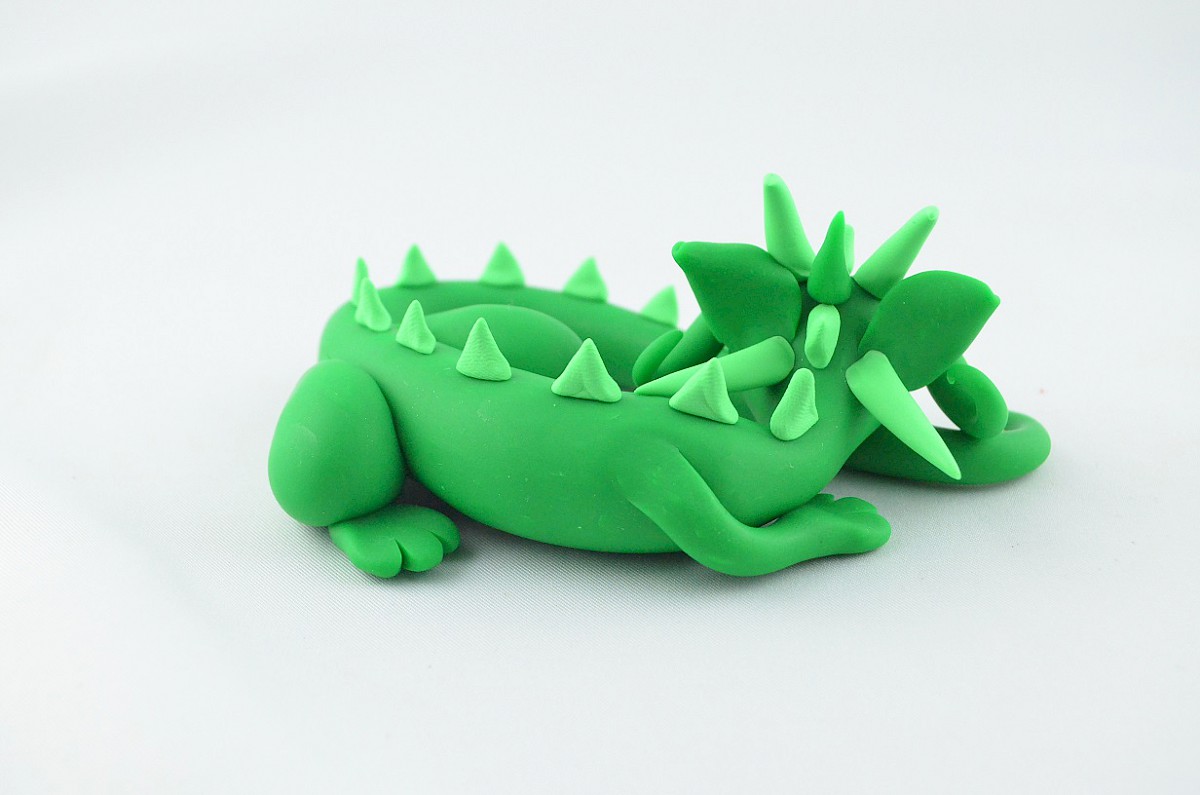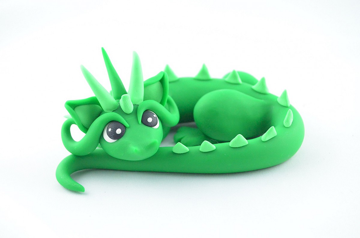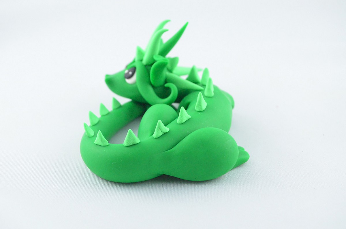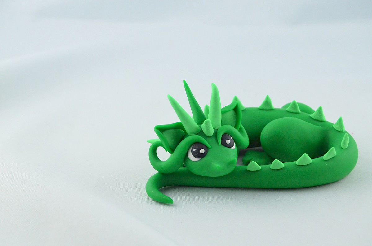 This clay dragon lives close to the nature. His green body and dragon horns make him look almost invisible in the long grass – where the dragon spends big part of the day listening to the birds singing above his head.