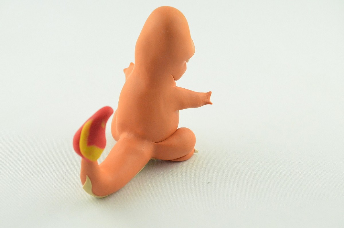 Pokémon will never be forgotten. Charmander is one of the most recognizable characters. The creature, looking like a dragon, has a fiery tail! Blue eyes of the Charmander sculpture contrast with the orange color of his body. He is grinning ear-to-ear.