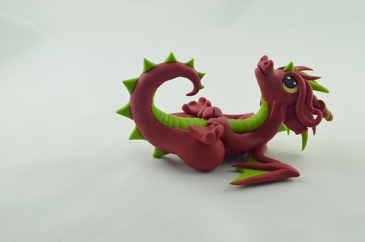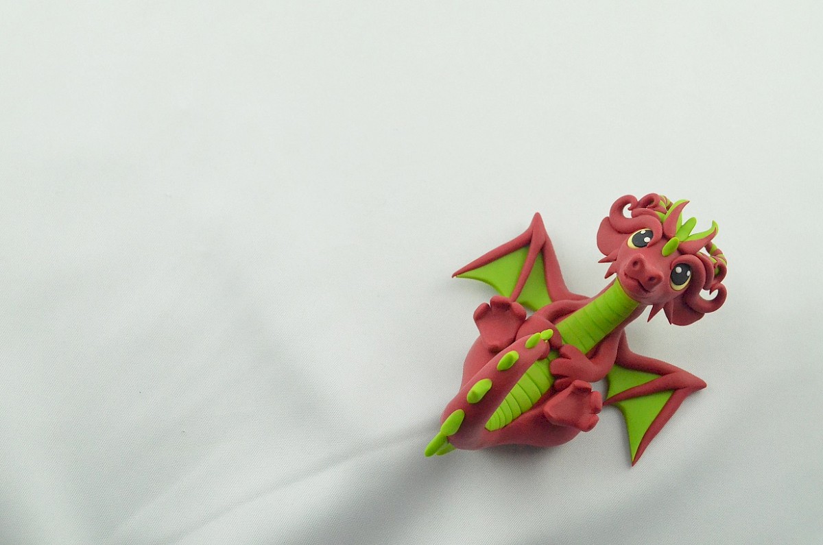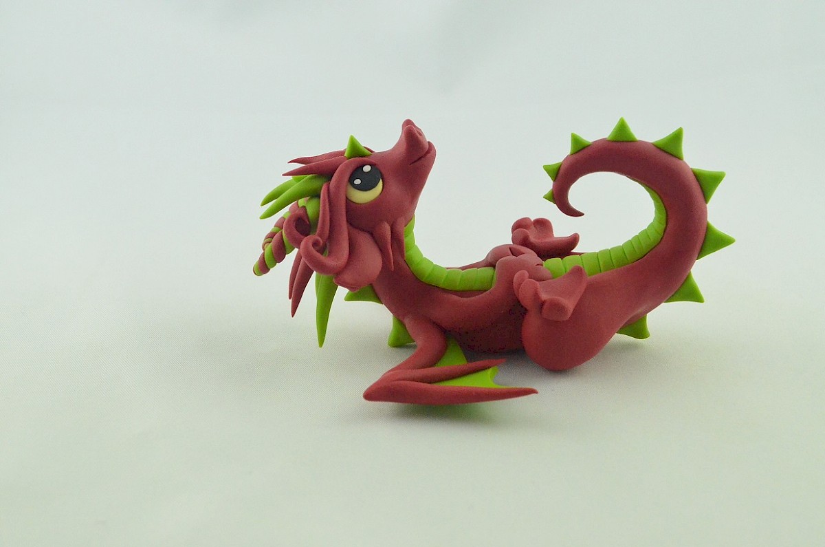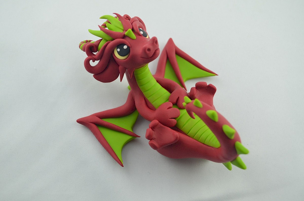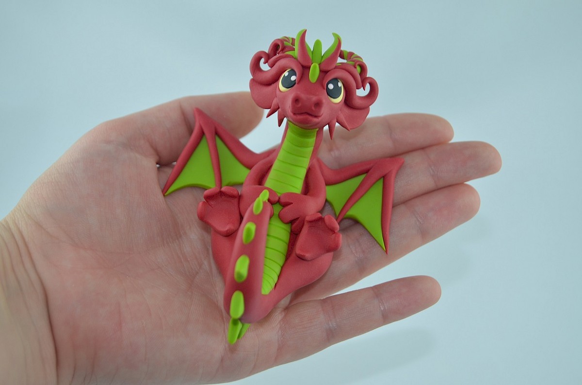 This adorable clay dragon smiles all the time. Lime scales adorn his body and make him look exotic. The dragon is a lovely creature, always ready to have fun spreading the positive energy! Little horns and wings get attention - the dragon loves when everybody looks at him.