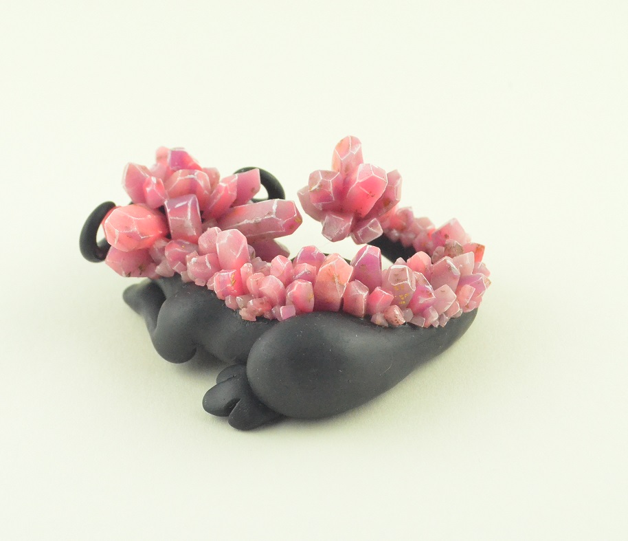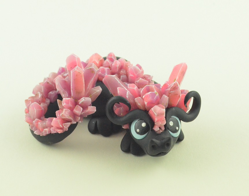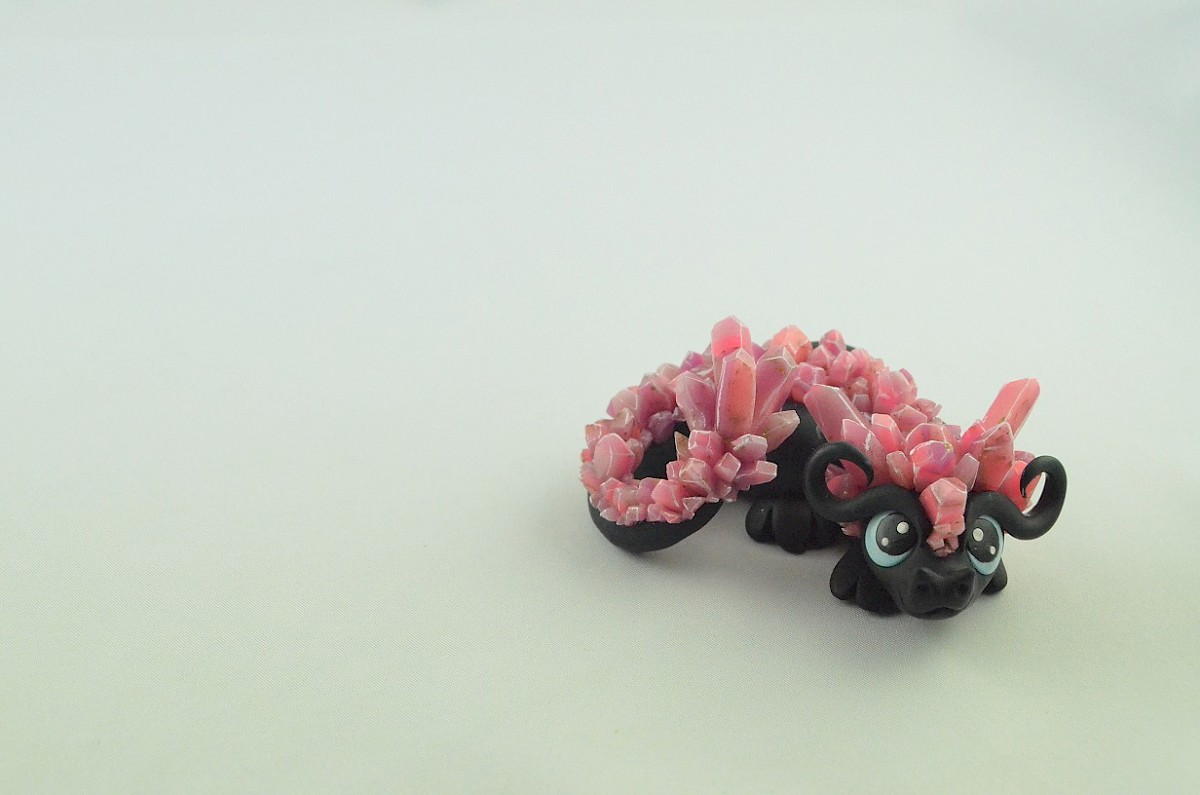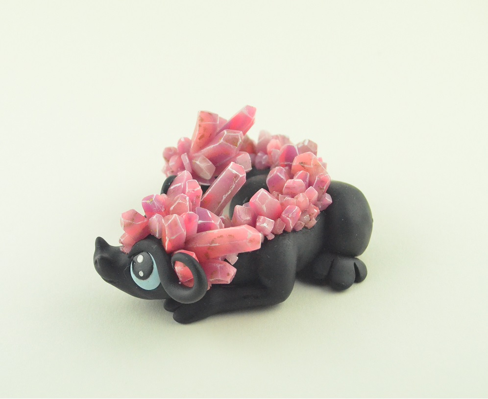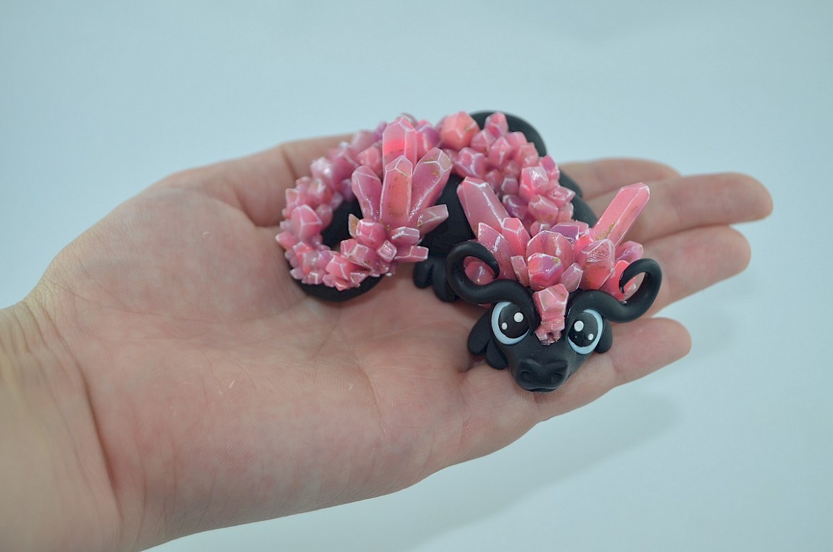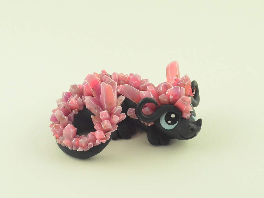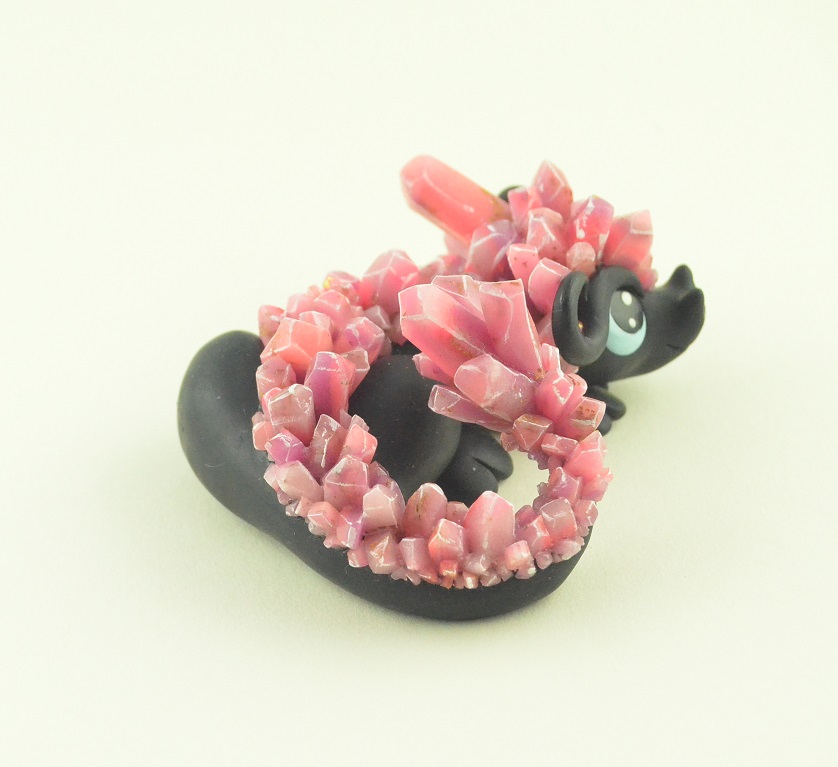 The black little dragon is a shy nocturnal creature which wakes up when the moon rises. The crystals adorning the dragon figurine look unique in the moonlight. His big eyes observe the surround.