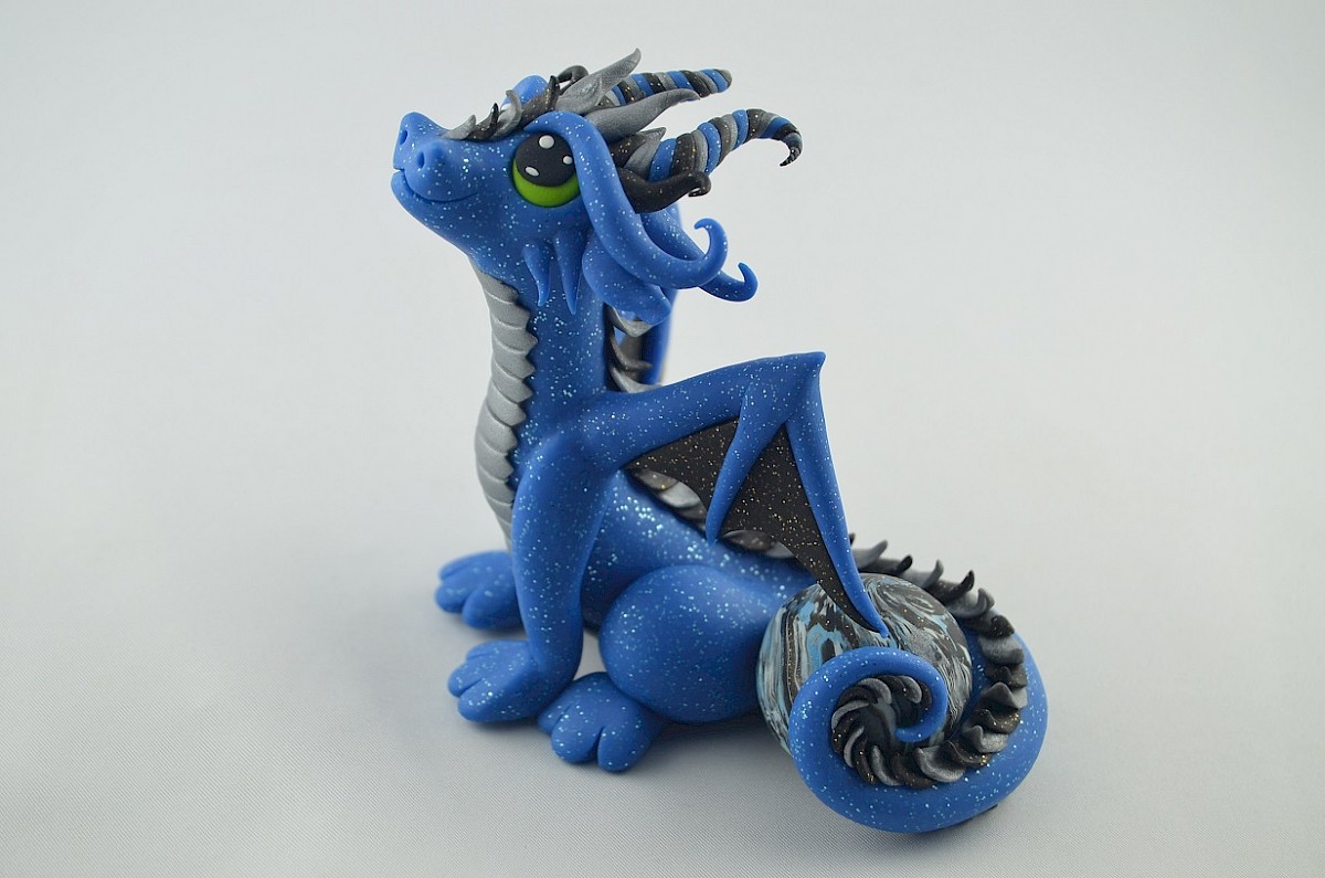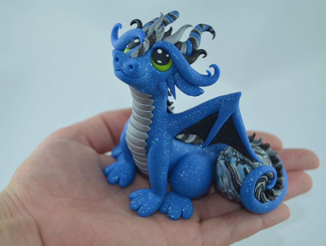 The dragon body is covered by glitter, his silver scales and green eyes are clearly visible. The dragon figurine is handmade of polymer clay. dragon figurine is perfect and original gift idea.