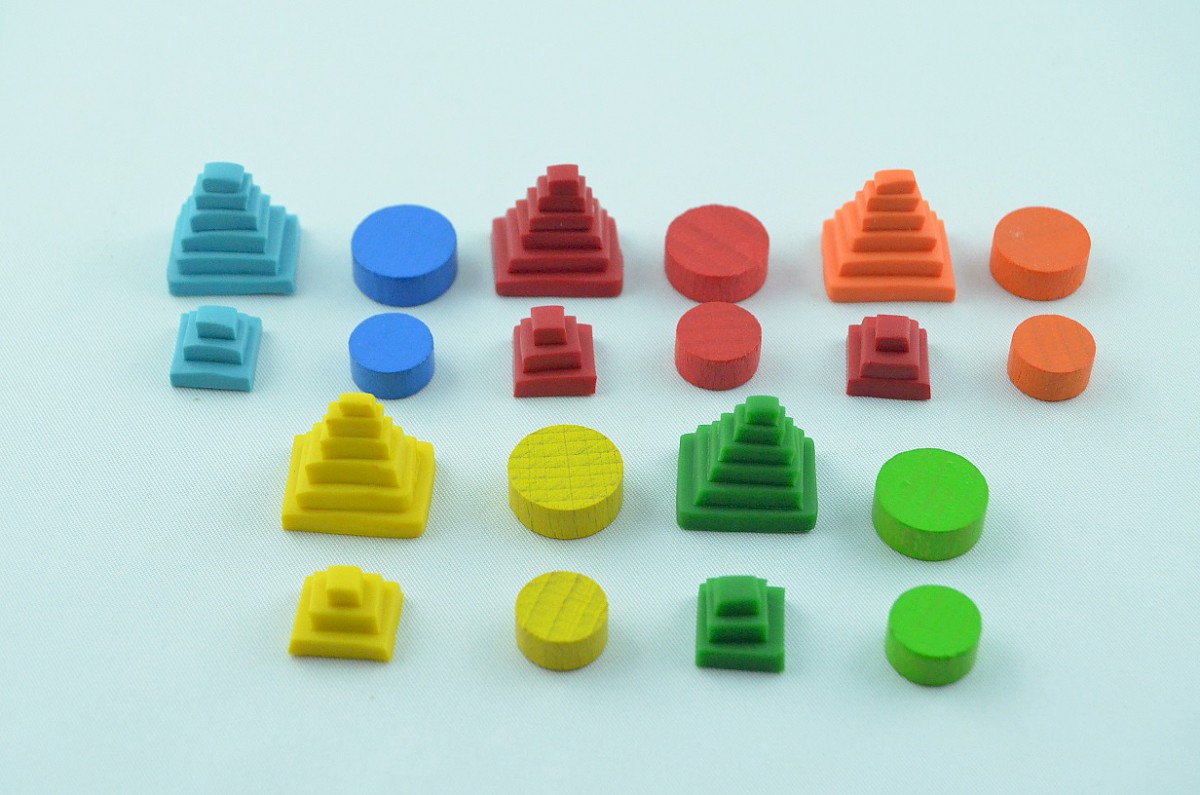 Handmade score and progess markers for board game Tzolk'in the Maya Calendar.