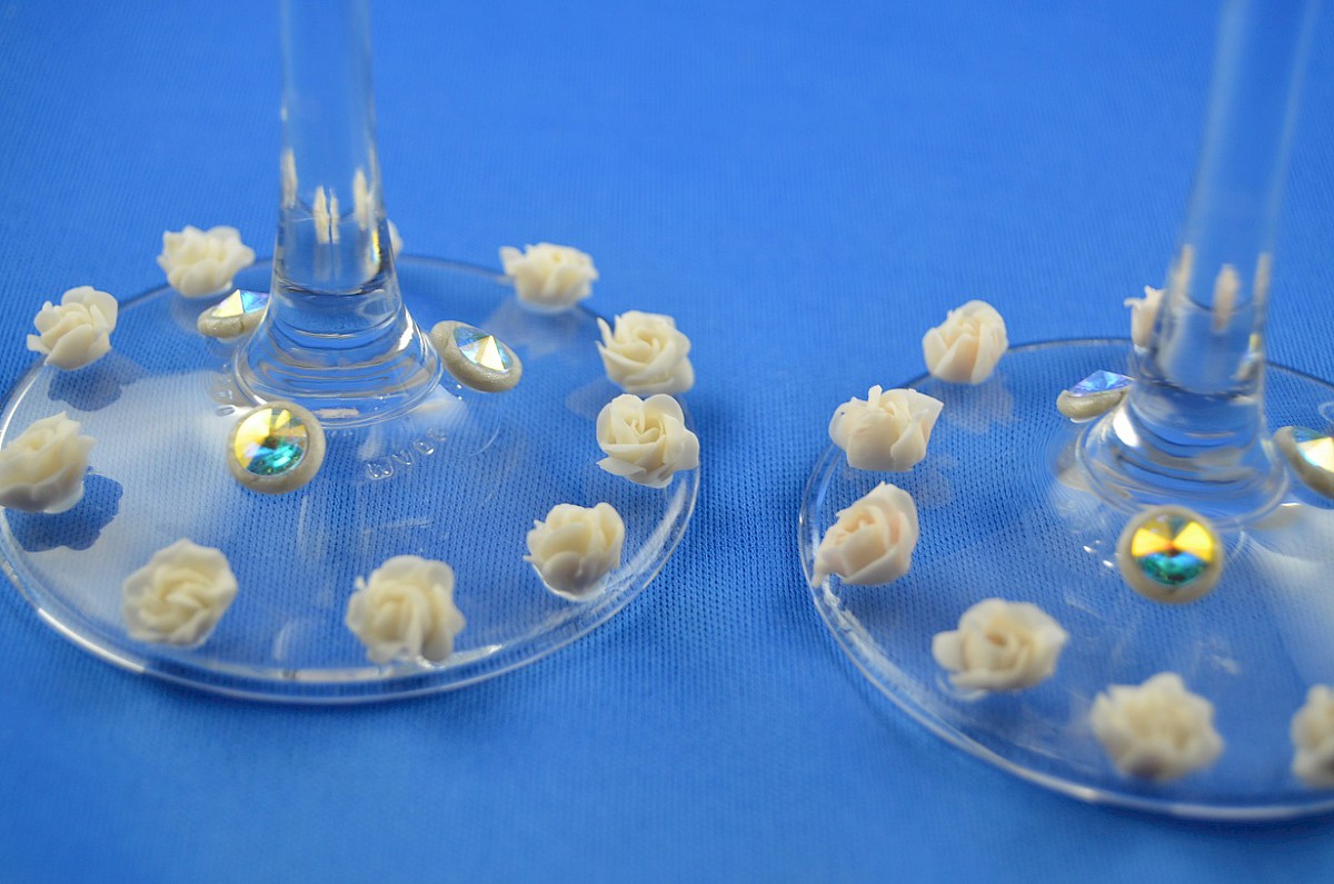 they are decorated using polymer clay and swarovski crystals. each tiny rose is handmade.