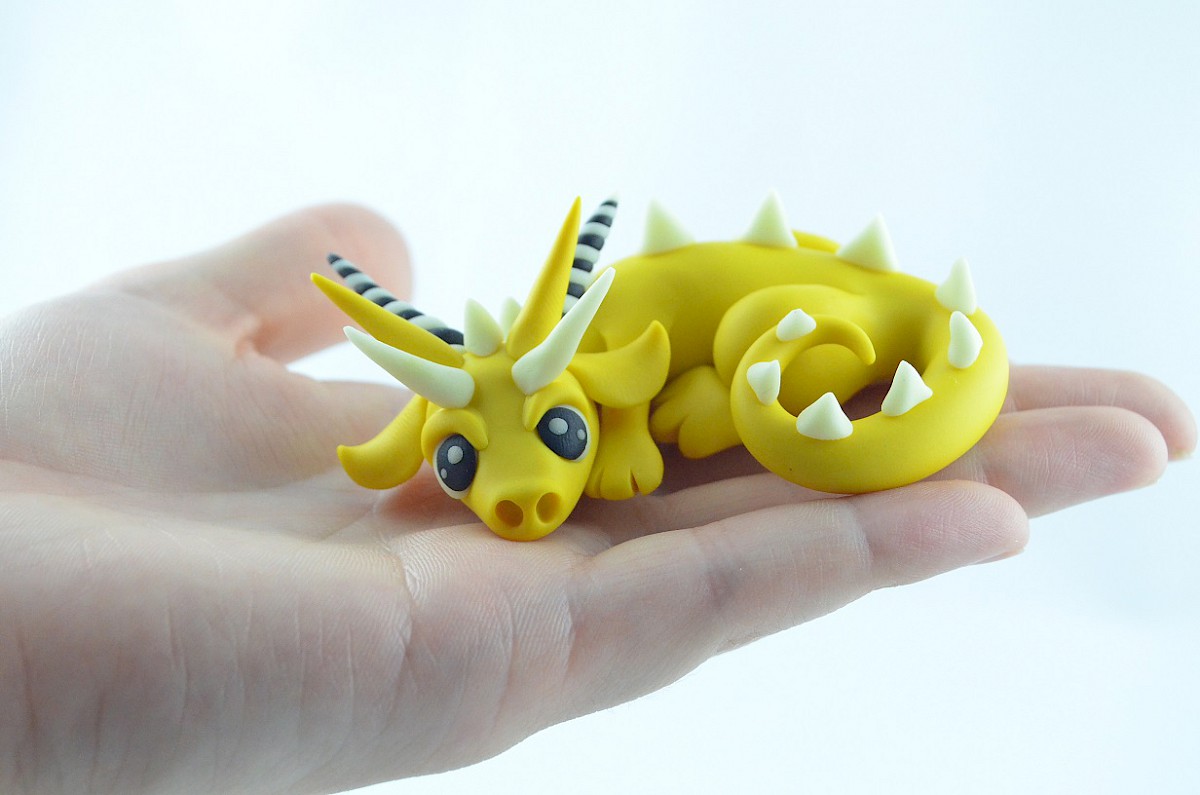 That yellow dragon sculpture is a bit lazy animal. Basking in the sunshine is his favorite custom during hot days. The clay dragon isn’t afraid even of scorching temperatures! Other handmade dragons can’t stand it, so the yellow one does it in company of friendly lizards and snakes.